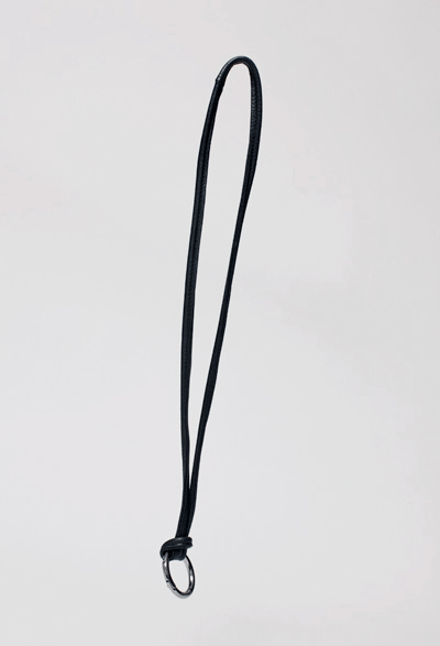 Handy neck keyring in antique silver coloured metal and strap in lambskin leather. Perfect around your neck or combined with the Torta tote.